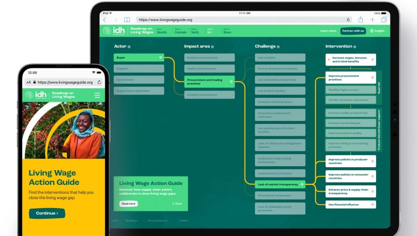 IDH’s new Living Wage Action Guide is a free resource under our Roadmap. In this guide you can find solutions on how to take steps with your partners to close living wage gaps. It also includes many practical tips.