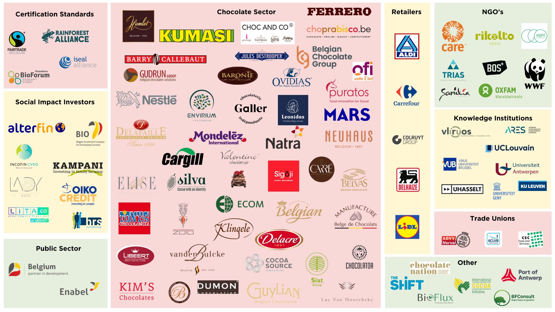 The cocoa-processing industry, chocolatiers and companies that are active in the Belgian chocolate sector will substantially intensify their investments into the sustainable development of the cocoa sector in the coming years, retailers take a closer look at their house brands, civil society organisations are encouraged to share learnings and appeal to their networks, universities do research into good practices and make that information publicly available, standard setting organisations keep their standards up to date and follow-up on activities on-field.